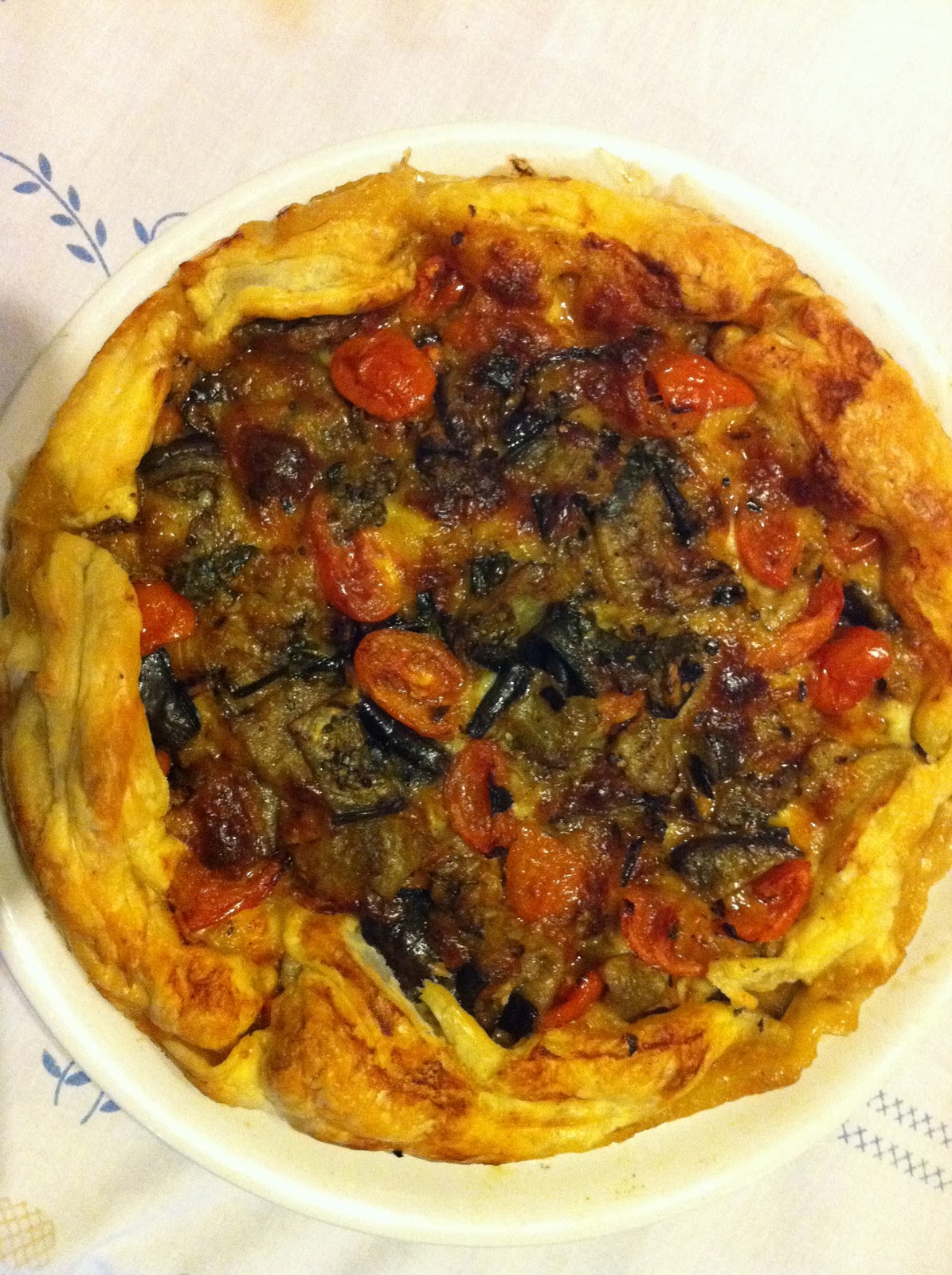 Mescolare gli ingredienti unire l'olio ( poco ) , stendere la sfoglia bucherellarla aggingere gli ingredienti infornare a 180 per circa 30 minuti